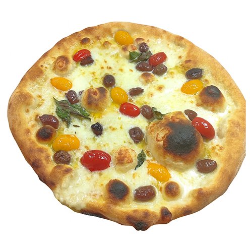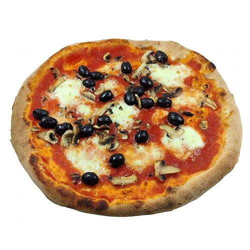 pomodoro, mozzarella di bufala, funghi, olive nere, basilico.