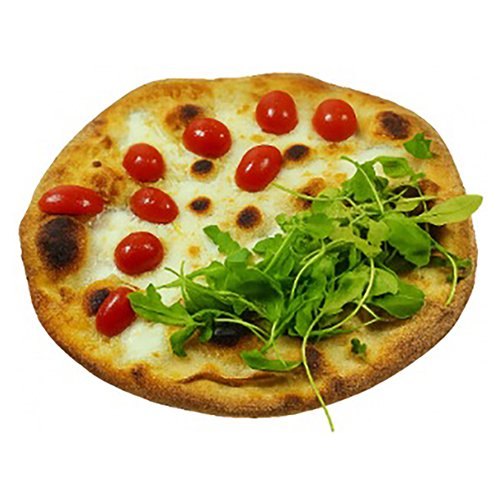 mozzarella di bufala, pomodorini, rucola, basilico.
