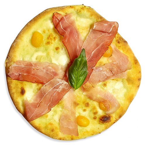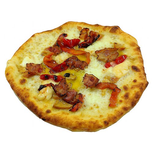 bufala affumicata, porcini, guanciale, peperoni, basilico.