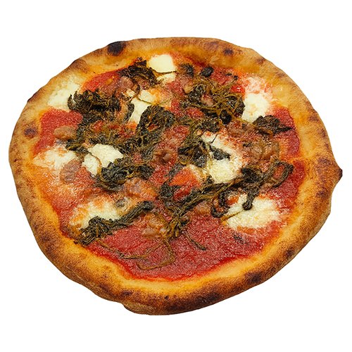 pomodoro, mozzarella di bufala, salsiccia, cime di rapa, aglio