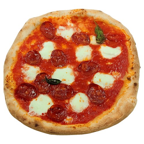 pomodoro, mozzarella di bufala, salame piccante, basilico